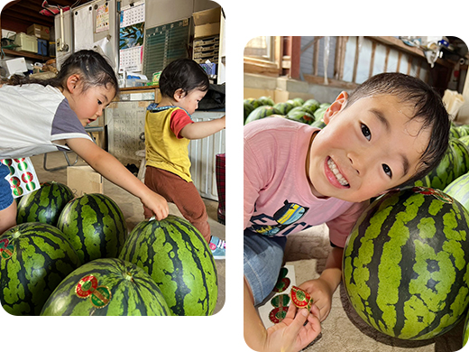 有機肥料を使用し、天候によって水の量を調節。食べていただけたら、スーパーで販売しているスイカとのちがいを一発でわかっていただけると思います。