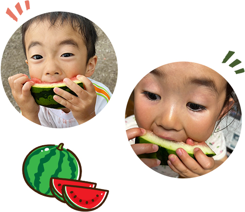 高木農園の自慢は、なんといっても大きくて糖度の高いスイカ。とにかく甘くてみずみずしい。中身もぎっしりと詰まっており、皮の際まで甘いので最後までおいしく食べられます。